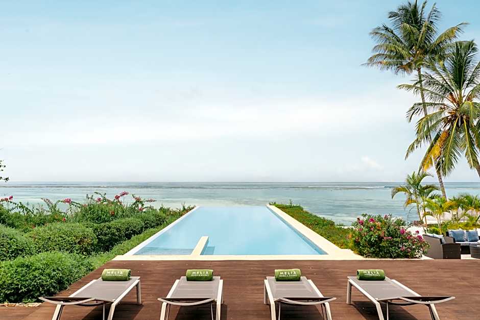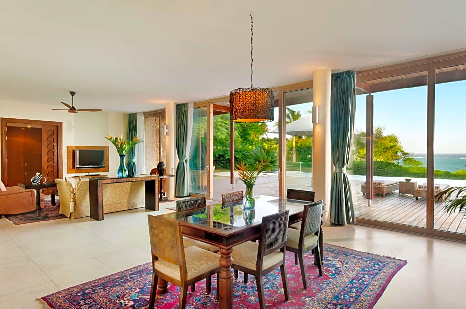 This villa features a garden area with a private infinity pool with sun beds. Guests can also enjoy ocean views from the pool area. The unit also features a kitchen and a separate living room with a dining table. The villa also comes with an outdoor tropical shower and bathtub. The two bedrooms come with private bathrooms.