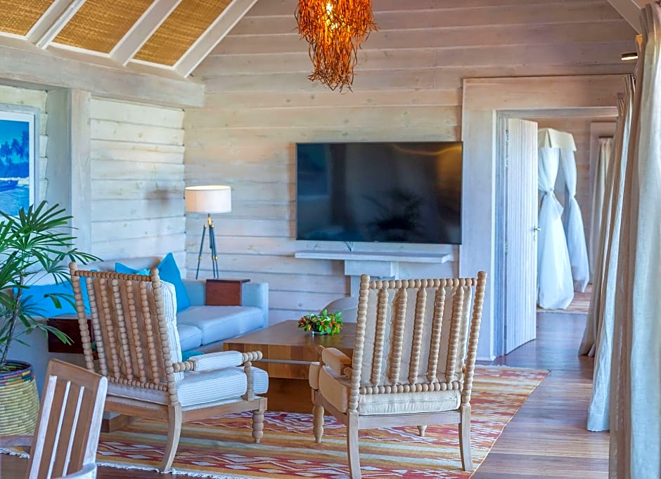 The spacious bungalow features 1 bedroom and 1 bathroom with a walk-in shower and free toiletries. The air-conditioned bungalow provides a flat-screen TV with cable channels, a mini-bar, a tea and coffee maker, a wardrobe as well as sea views. The unit offers 2 beds.